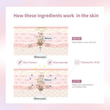 Water, Ammonium Acryloyldimethyltaurate/VP Copolymer, Isopropyl Palmitate, Glycerin, Propylene Glycol, Ethylhexyl Methoxycinnamate, Titanium Dioxide, Cetearyl Alcohol, Zinc Oxide, Steareth-2, Steareth-21, Tridecyl Trimellitate, Dimethicone, Xanthan Gum, Niacinamide, Saccharomyces/Rice Ferment Filtrate, Phenoxyethanol, Ethylhexylglycerin, Tranexamic Acid, Methylparaben, Propylparaben, Aroma.