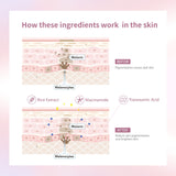 Water, Glycerin, Mineral Oil, Caprylic/Capric Triglyceride, Butylene Glycol, Dimethicone, Cetearyl Alcohol, Glyceryl Stearate, PEG-100 Stearate, Cetearyl Glucoside, Niacinamide, Tranexamic Acid, Saccharomyces/Rice Ferment Filtrate, 1,2-Hexanediol, Hydroxyacetophenone, Olea Europaea (Olive) Fruit Oil, Tocopheryl Acetate, Sodium Hyaluronate, Allantoin, Sodium Polyacrylate, Hydrogenated Polydecene, PPG-5-Laureth-5, Methylparaben, Disodium EDTA, Propylparaben, Phenoxyethanol, Aroma.